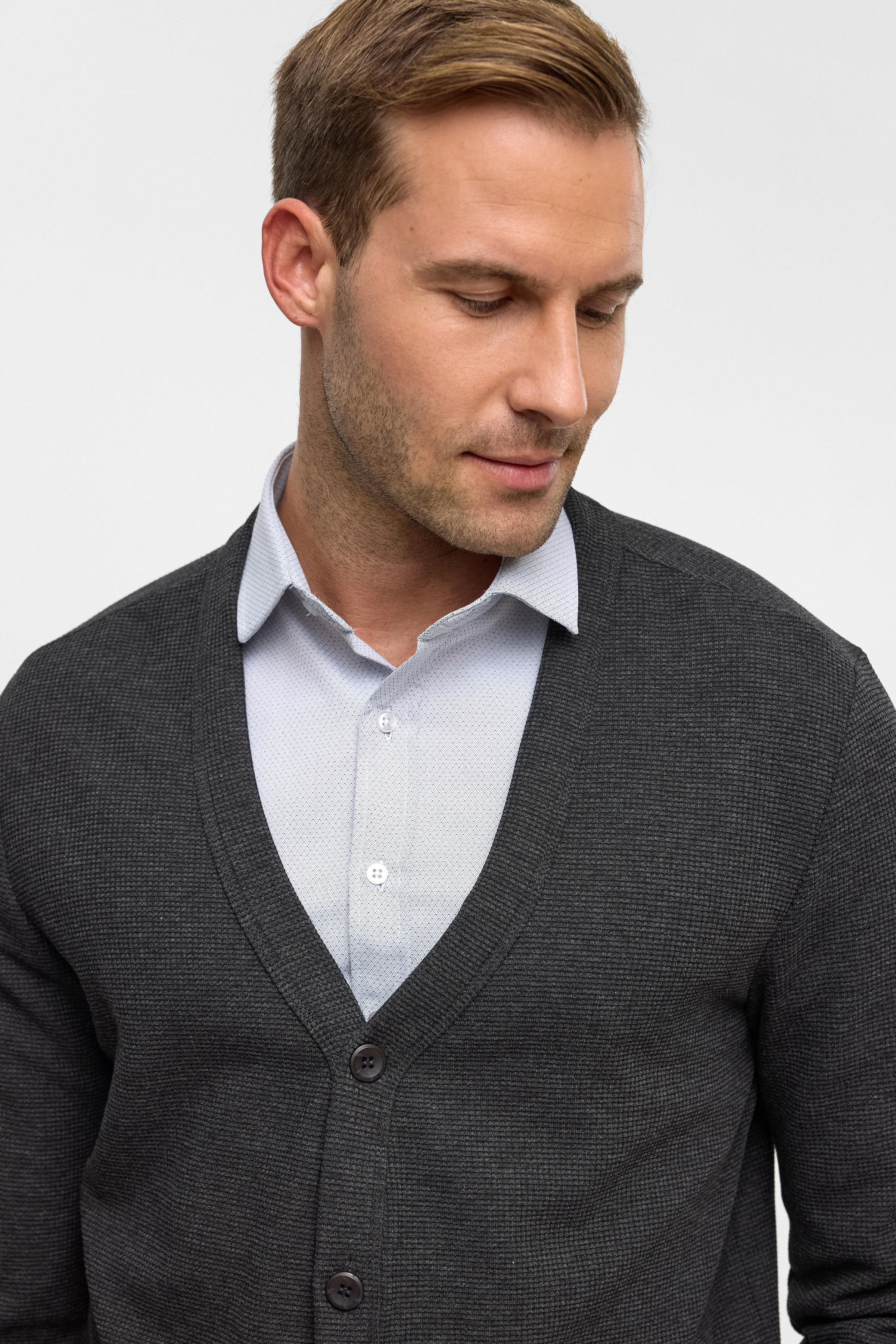 Antrasit Antrasit Regular Düz V Yaka Hırka