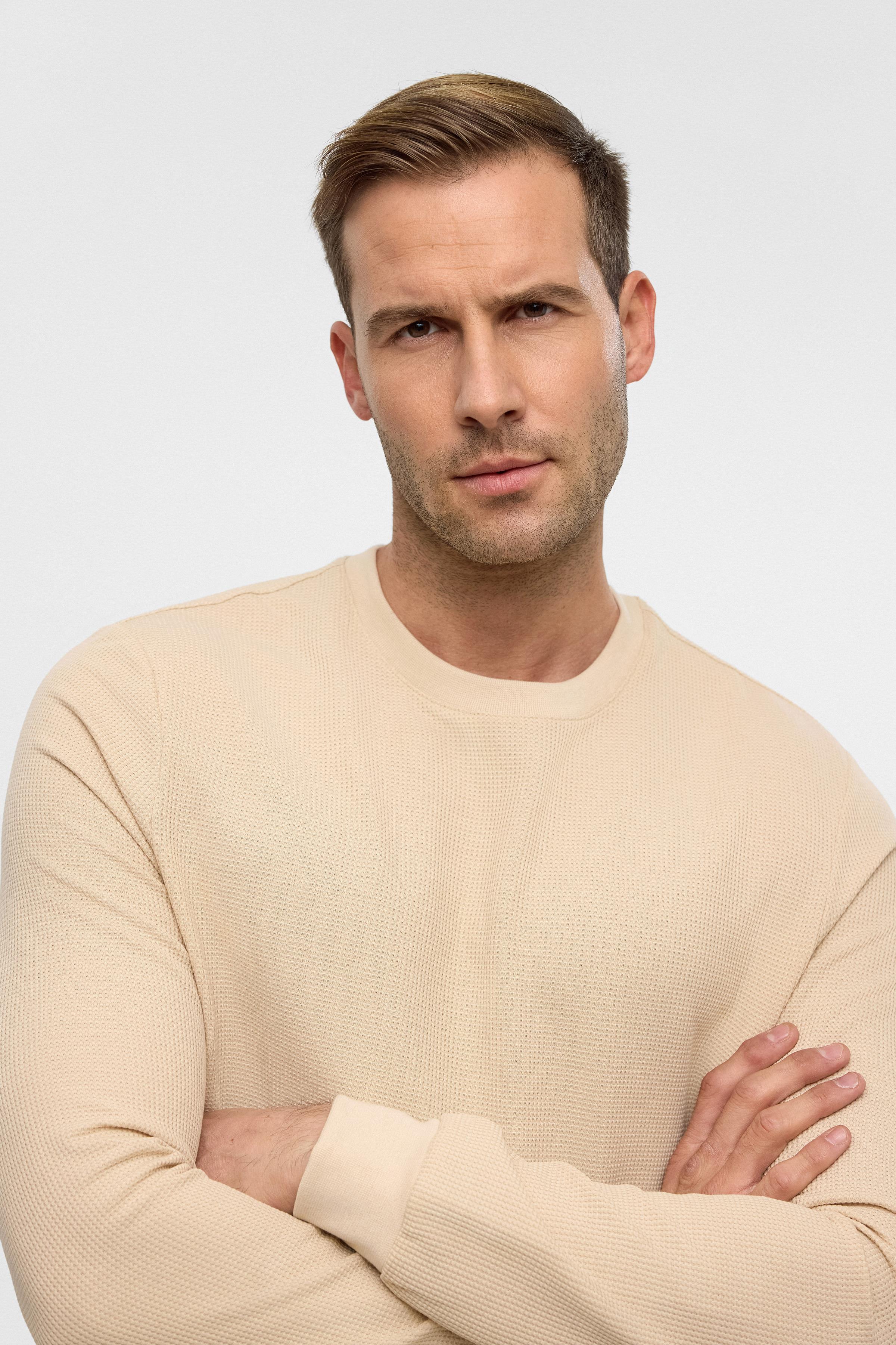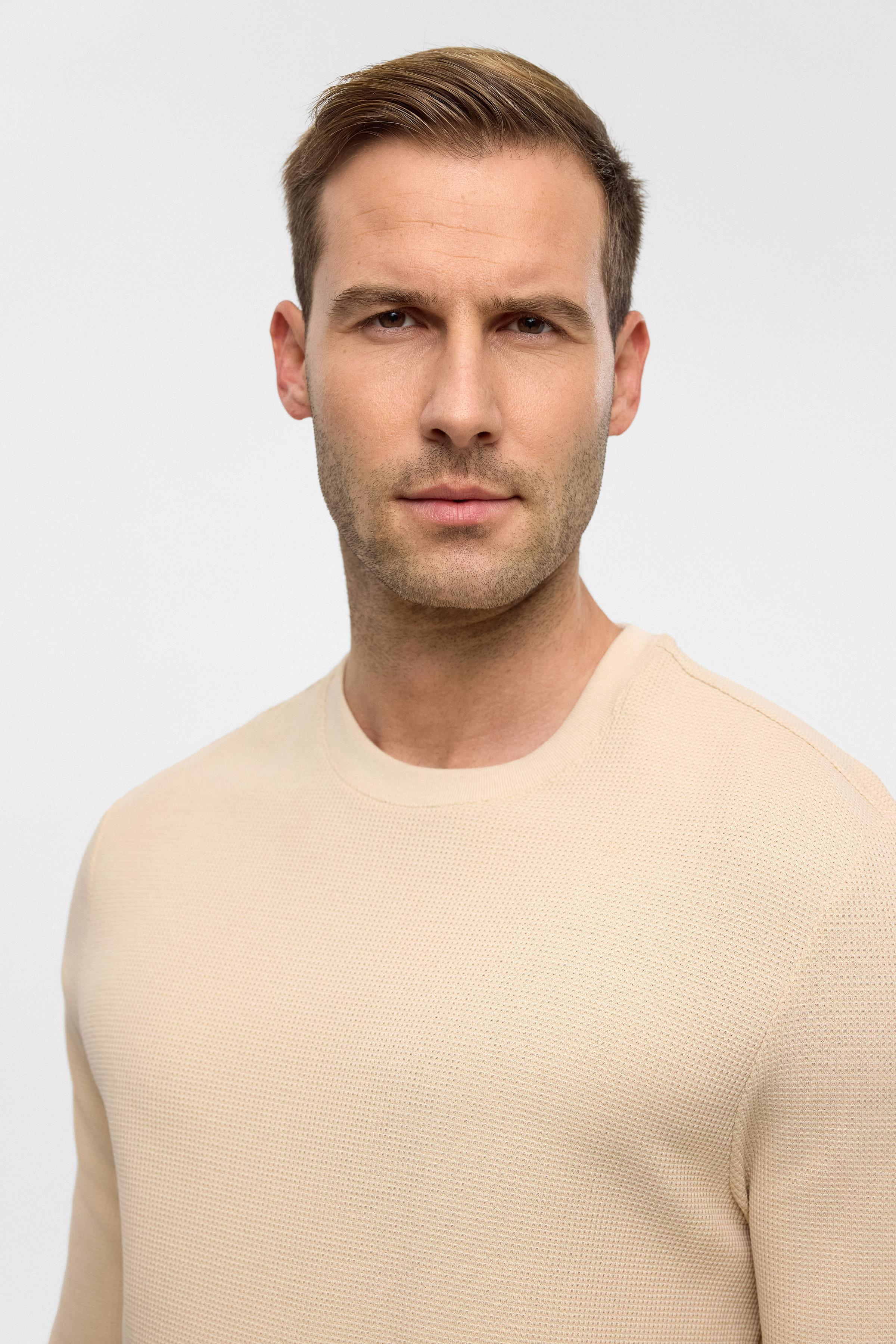 Bej Bej Regular Armürlü Bisiklet Yaka Triko