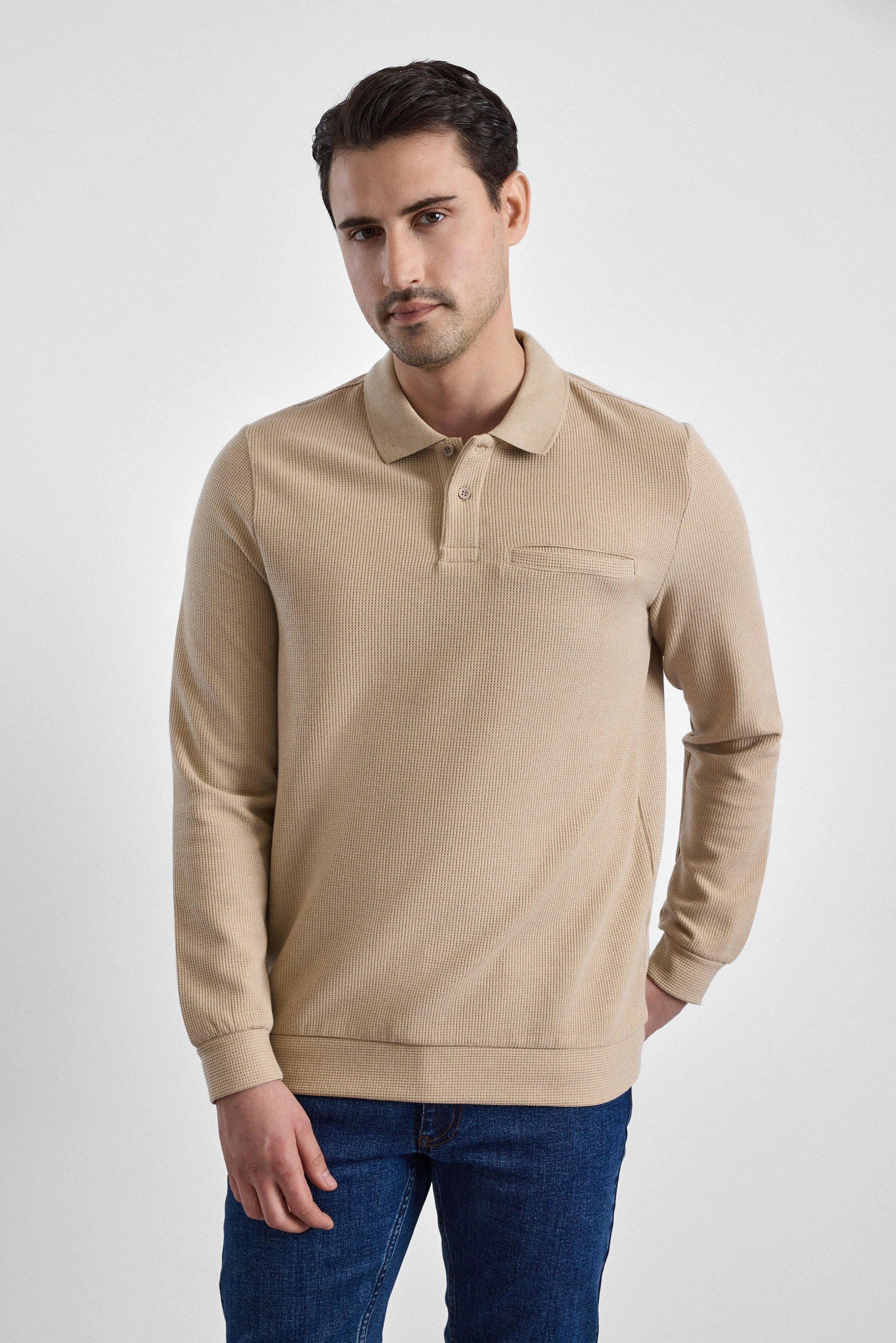 Bej Regular Düz Polo Yaka Sweatshirt (SW2013700028-BJ3)