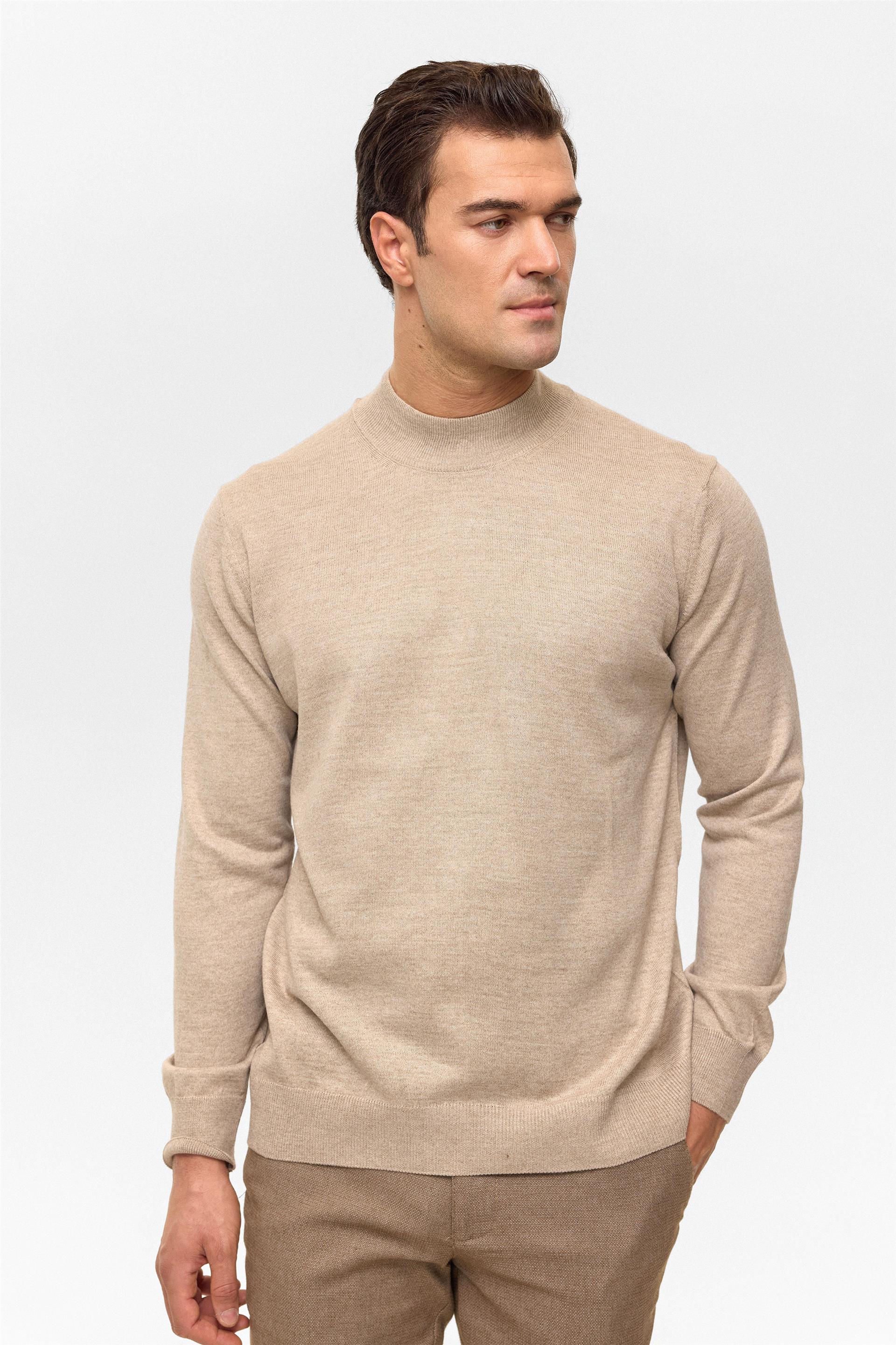 Bej Regular Düz Yarım Balıkçı Yaka Triko Kazak (TR2013700485-BJ3)