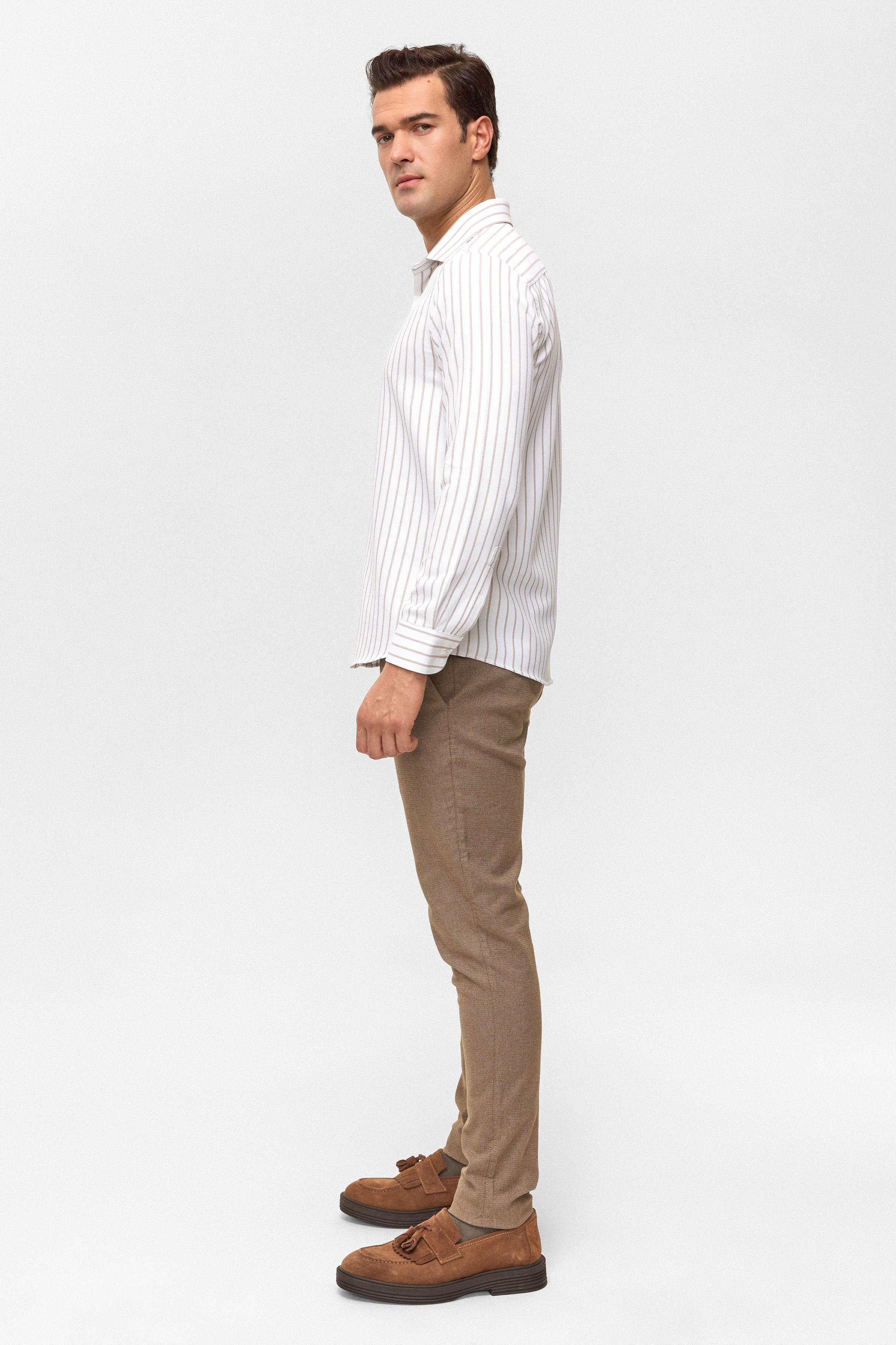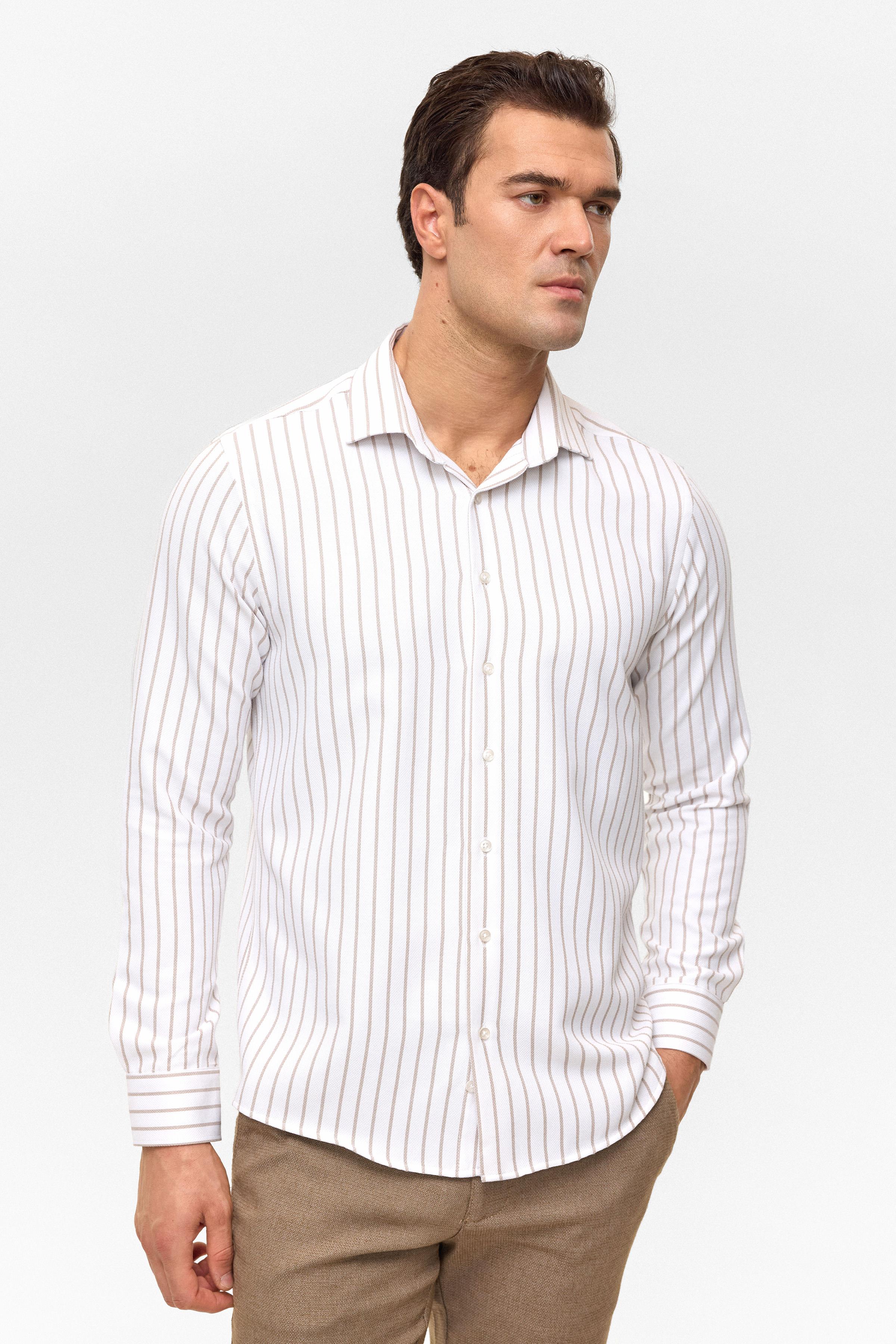 Bej Slim Çizgili Klasik Yaka Gömlek (GM2025500496-BJ3)