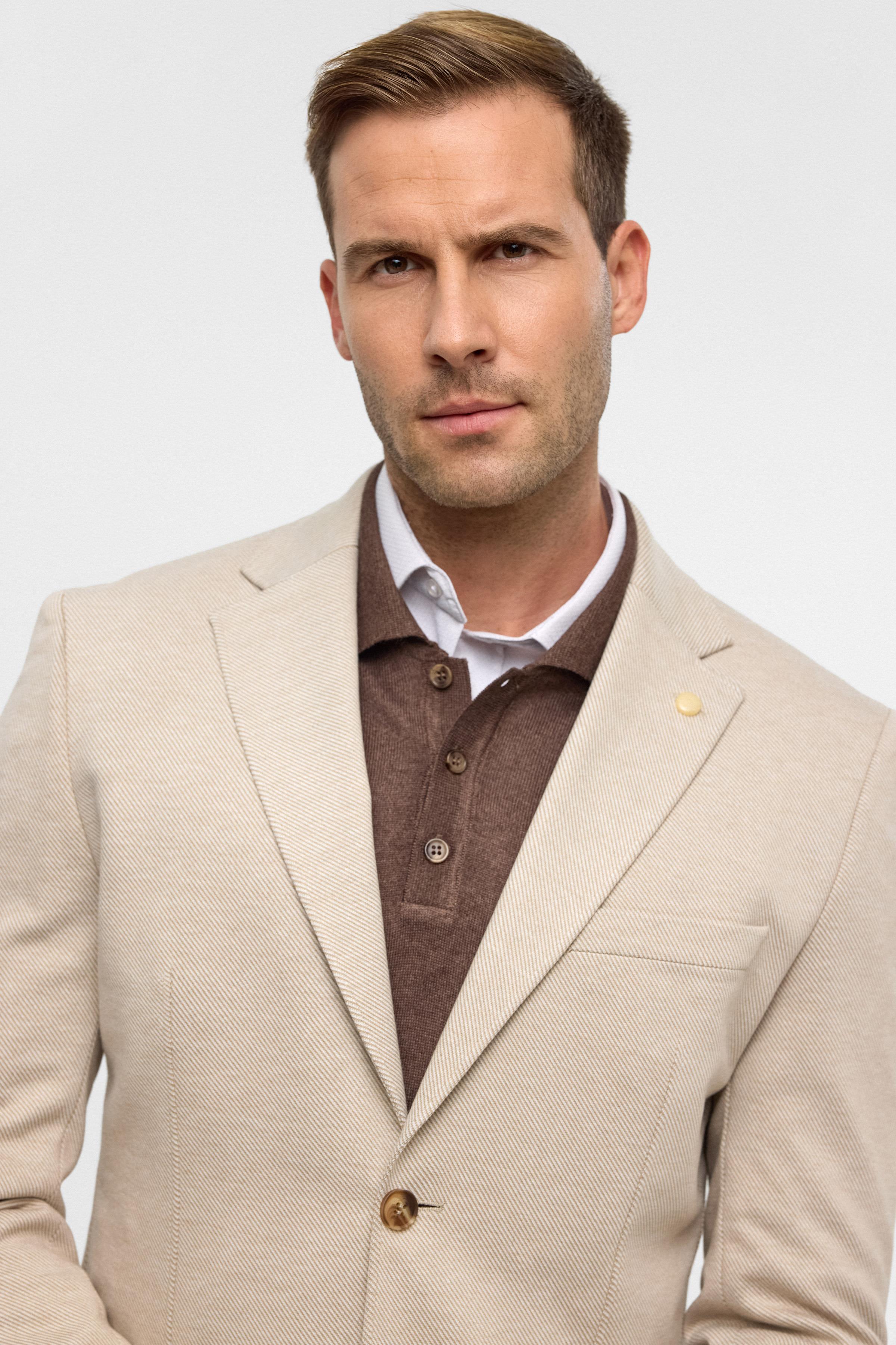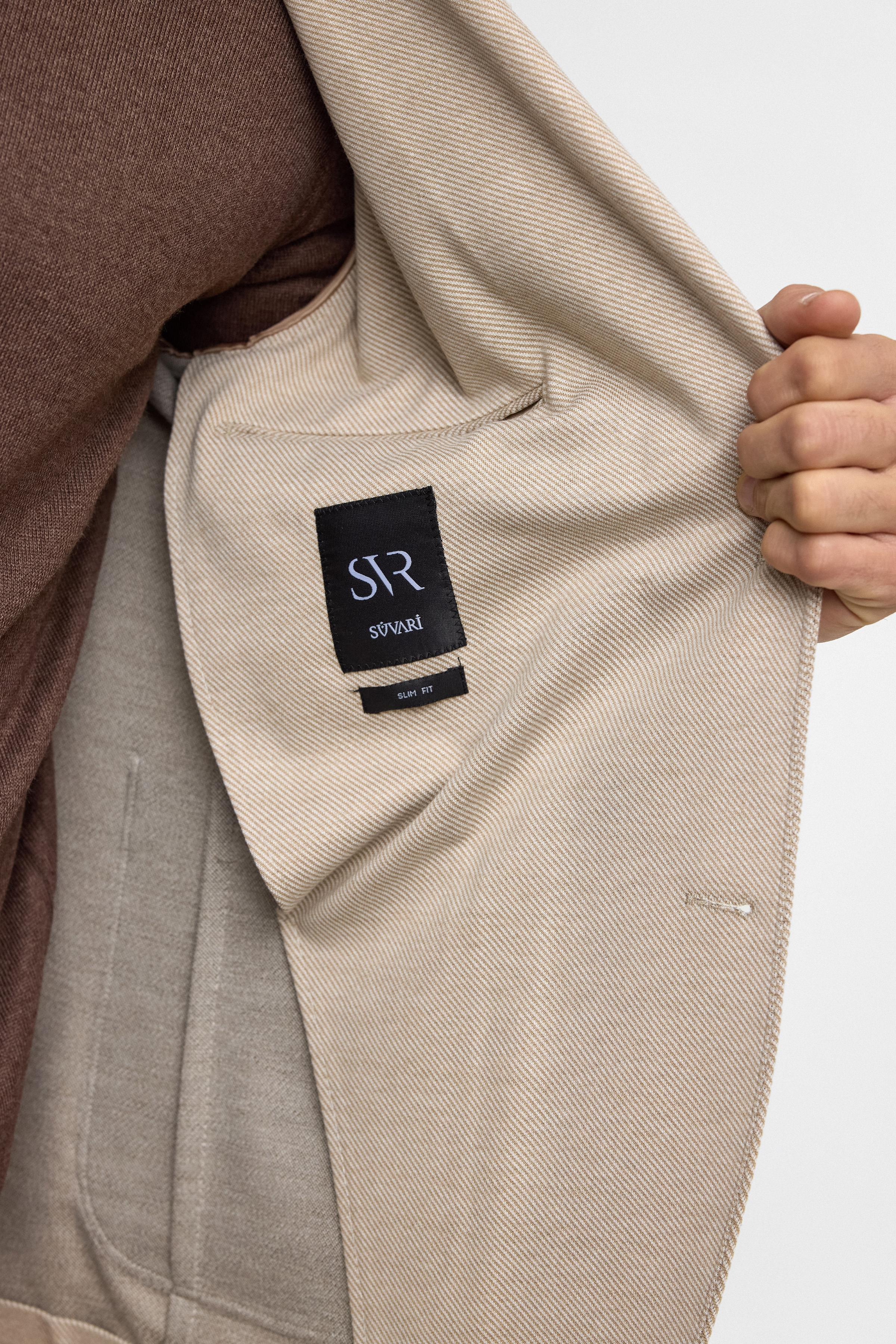 Bej Bej Slim Desenli Mono Yaka 6 Drop Ceket