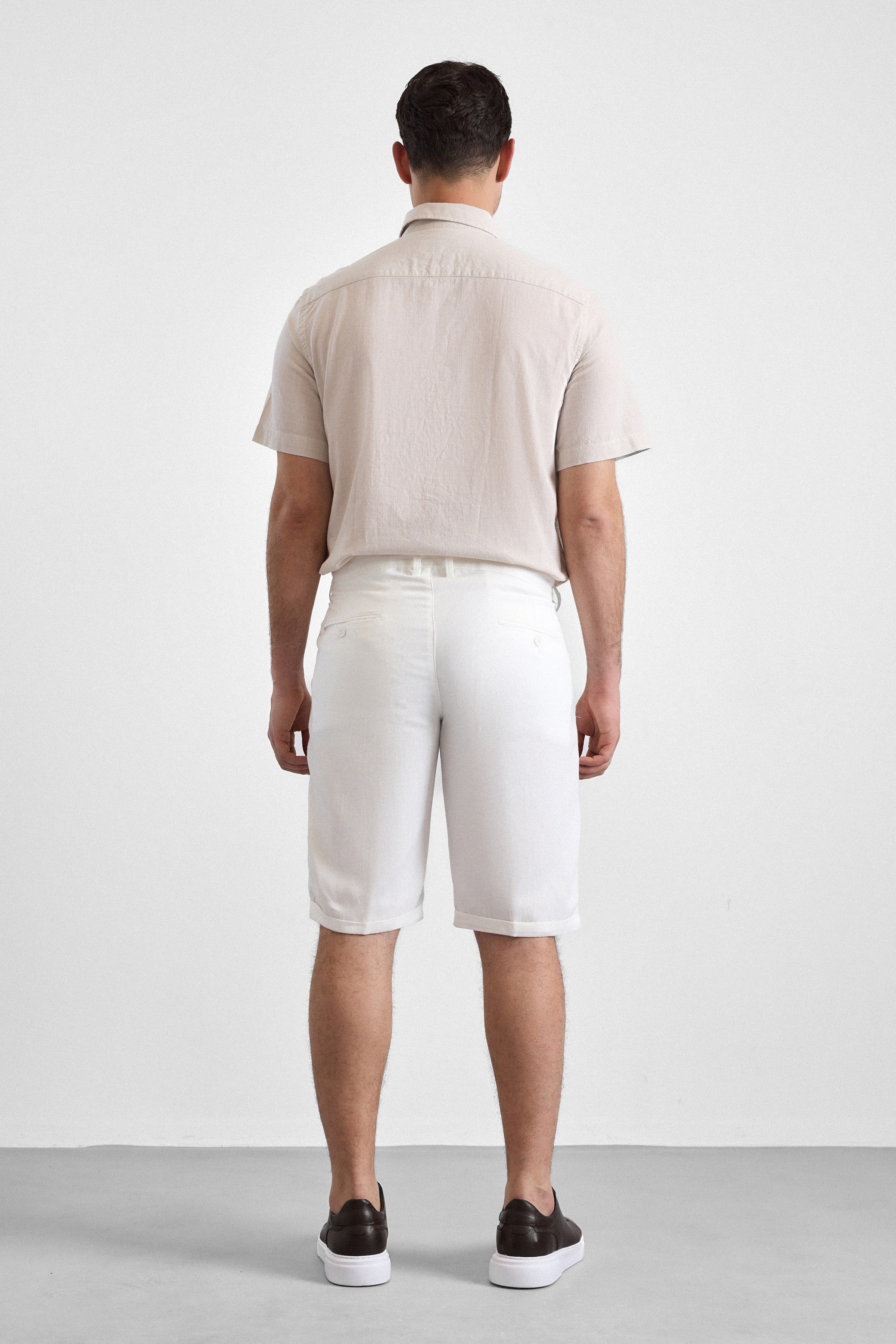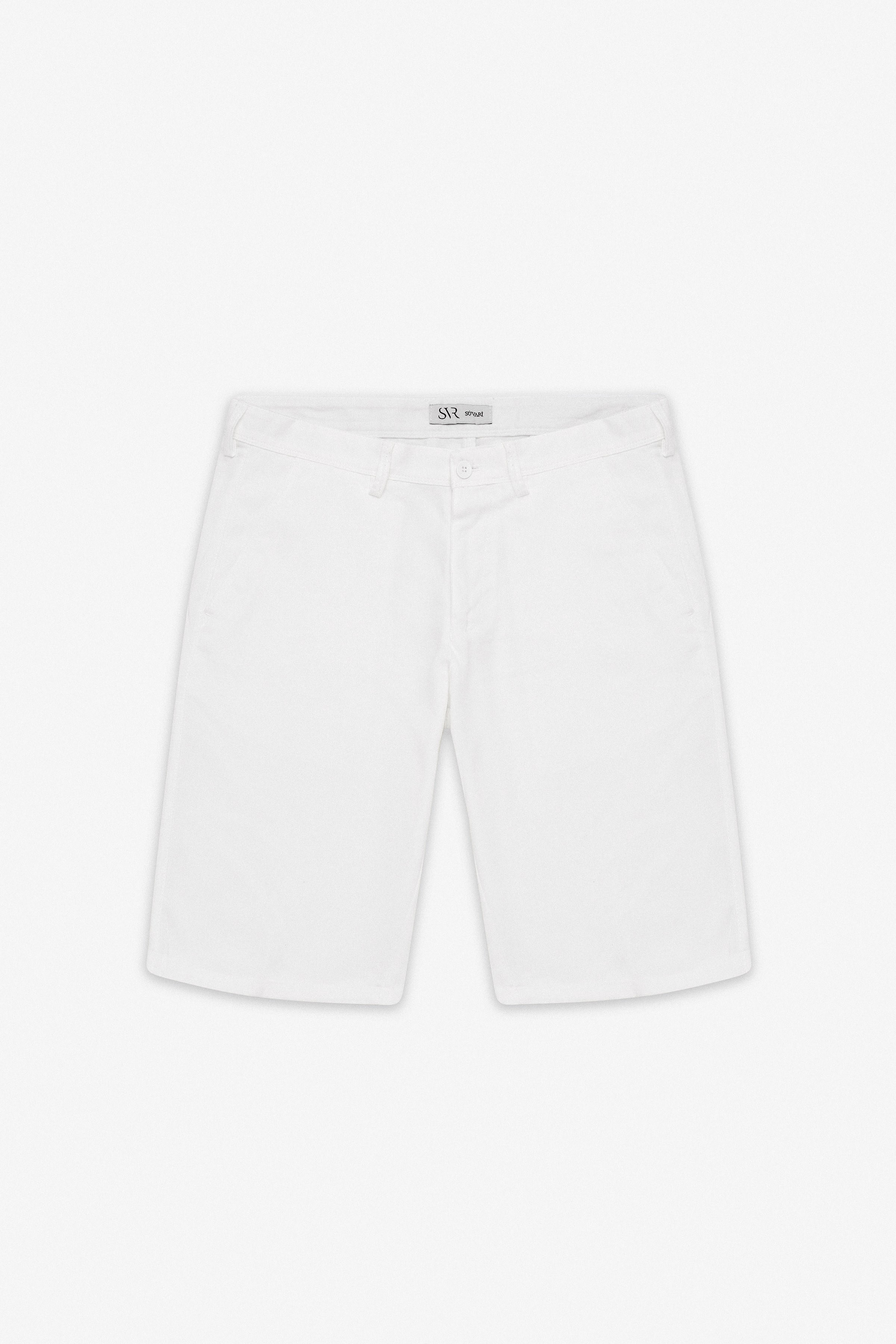 Beyaz Regular Düz Şort