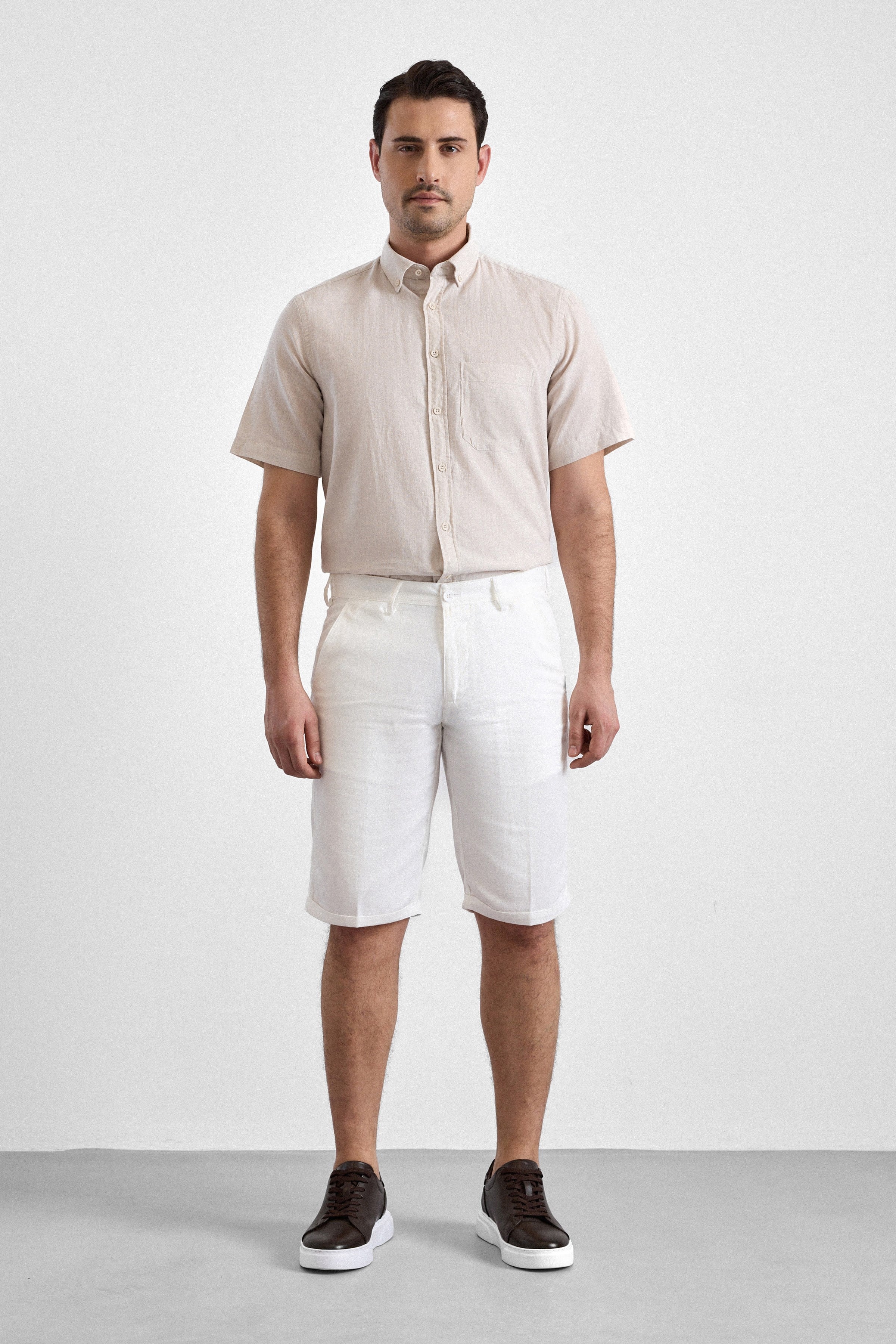 Beyaz Regular Düz Şort (PN2020500727-BEY)
