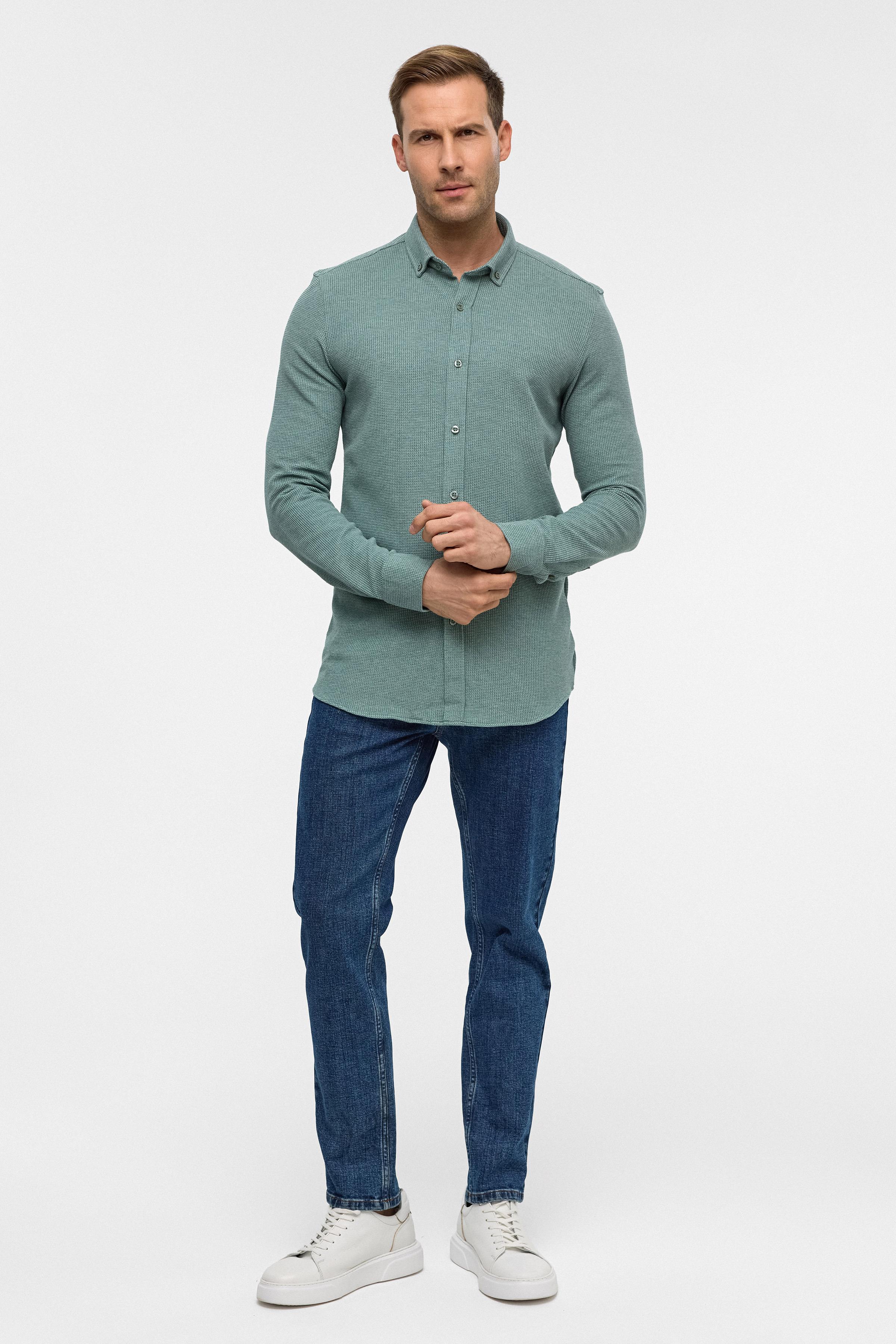 Haki Slim Armürlü Düğmeli Yaka Gömlek (GM2025500500-YH1)