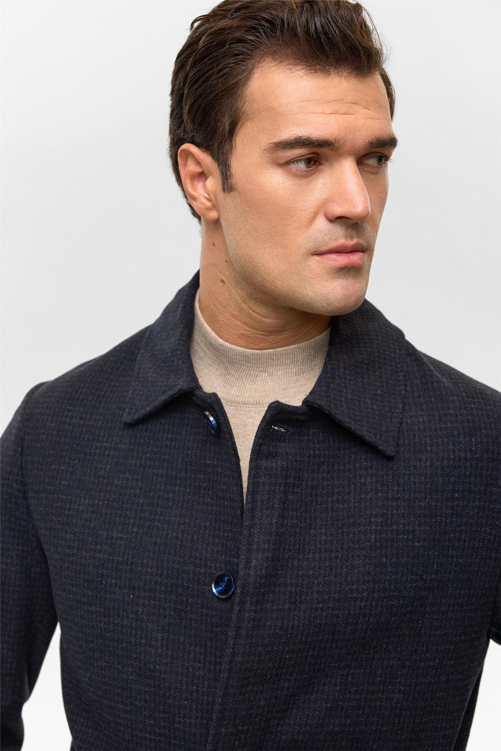 Lacivert Regular Düz Bebe Yaka Kaban (KB2010100329-M09)