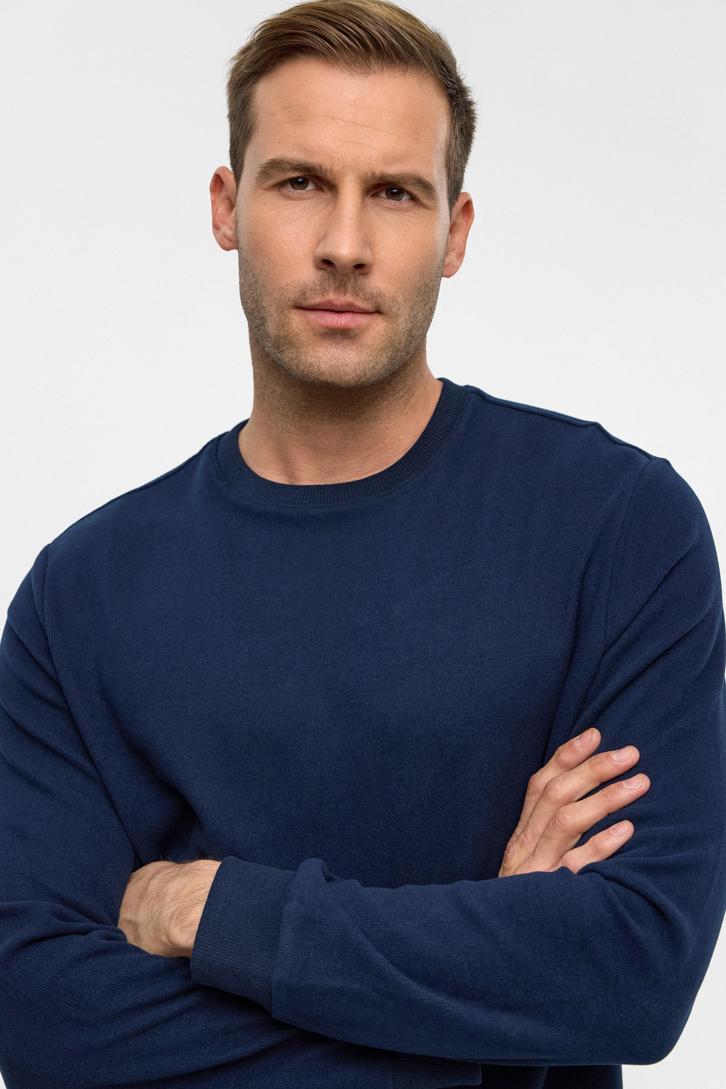 Lacivert Lacivert Regular Düz Bisiklet Yaka Sweatshirt