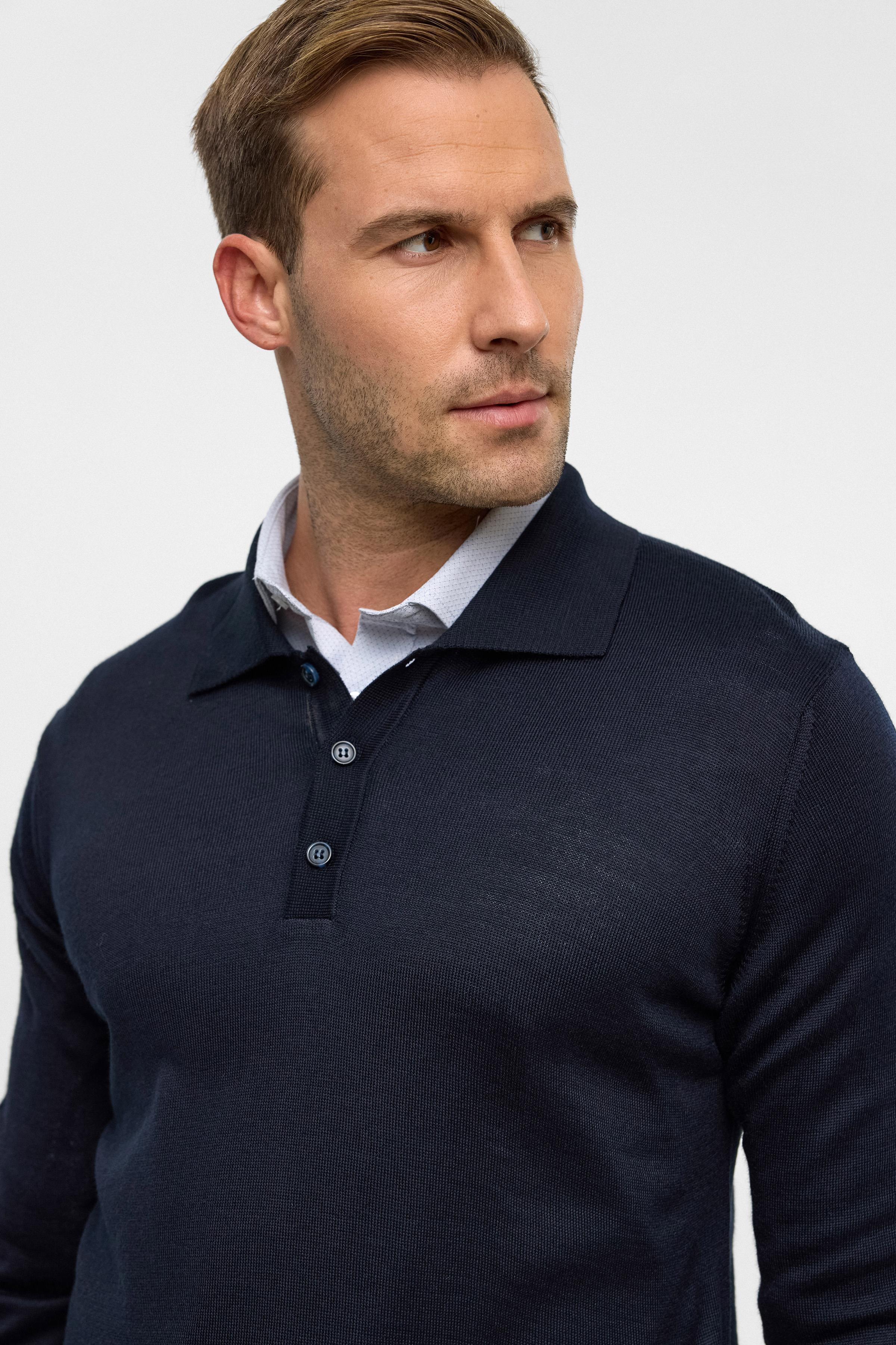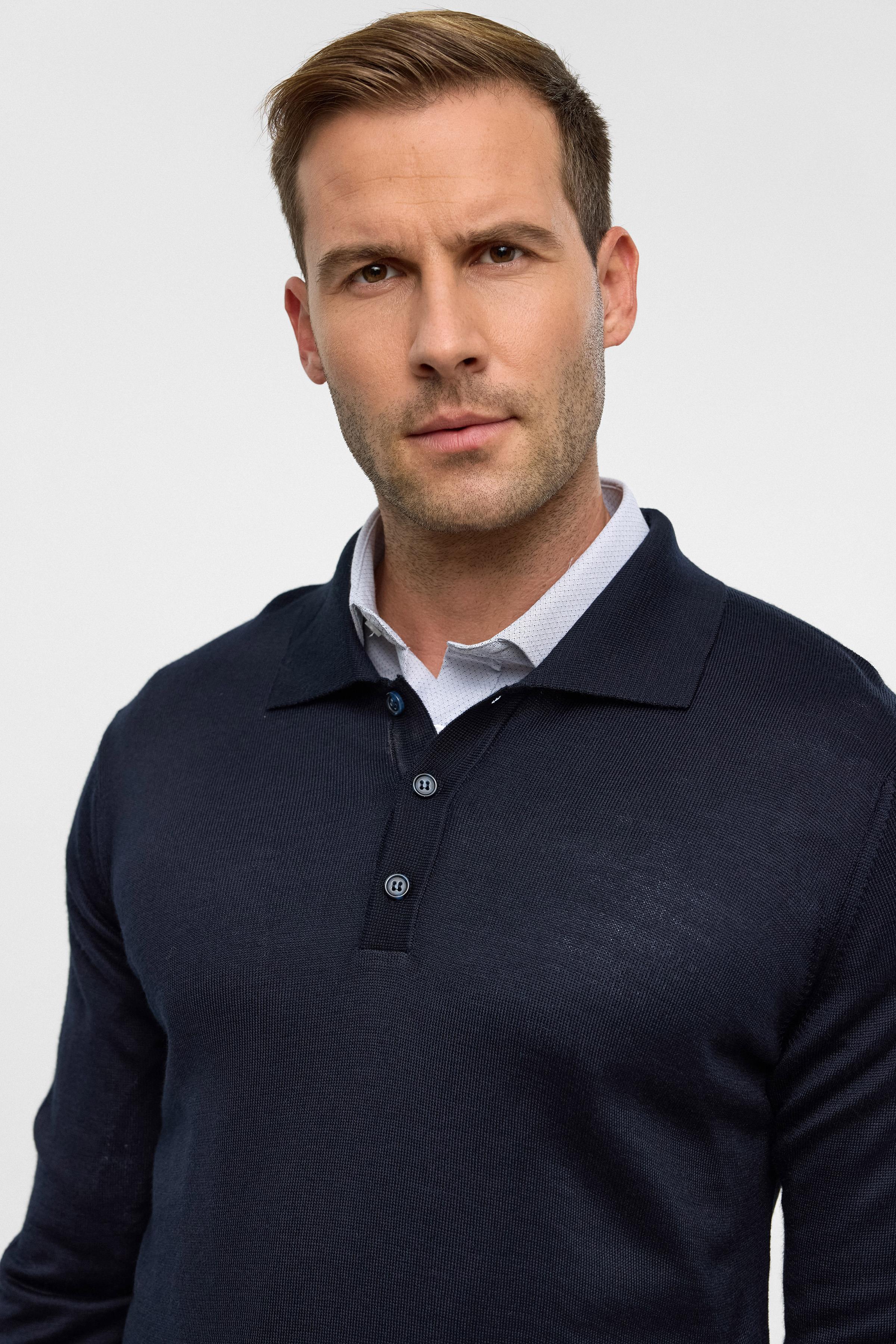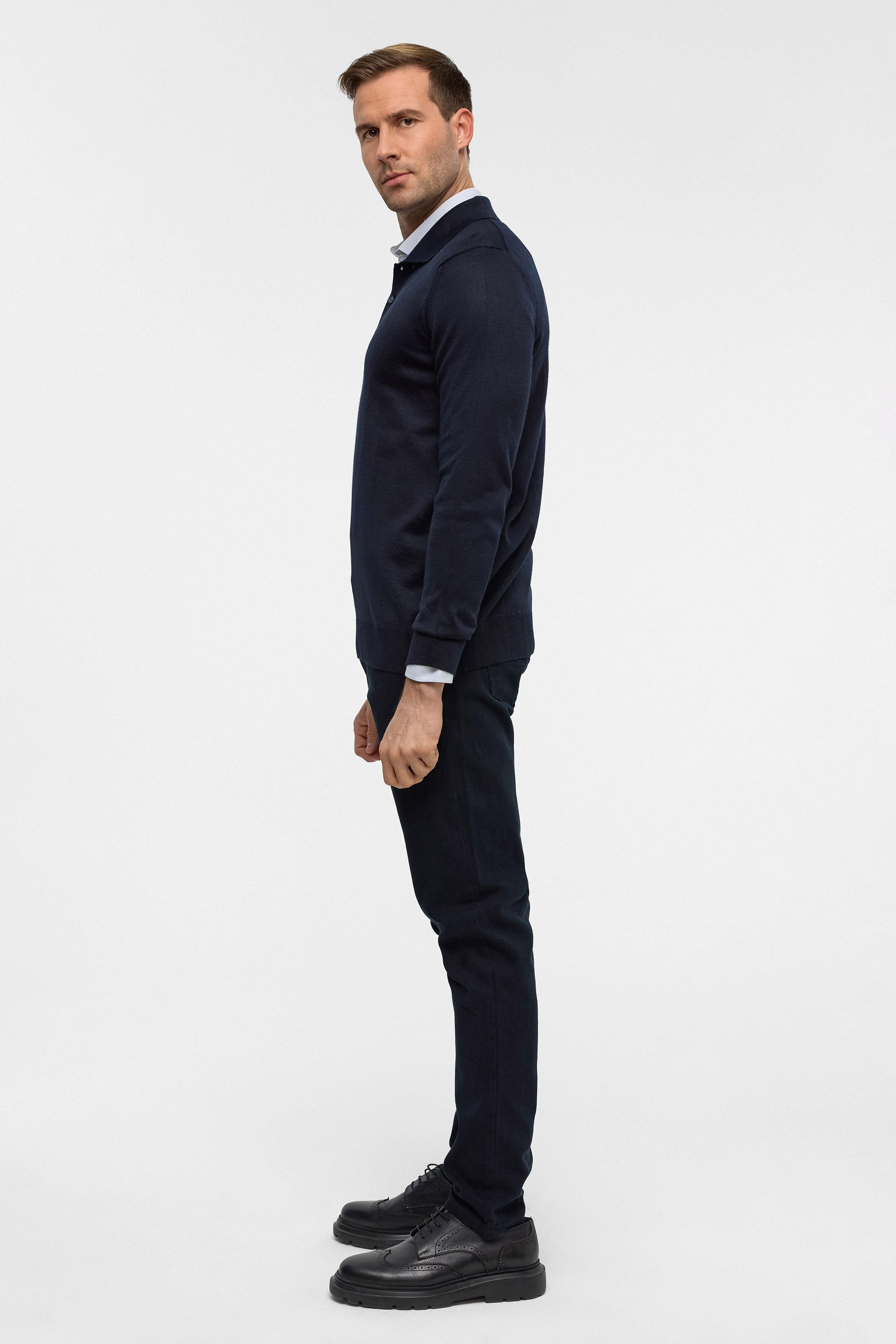 Lacivert Regular Düz Polo Yaka Triko (TR2013700484-M09)