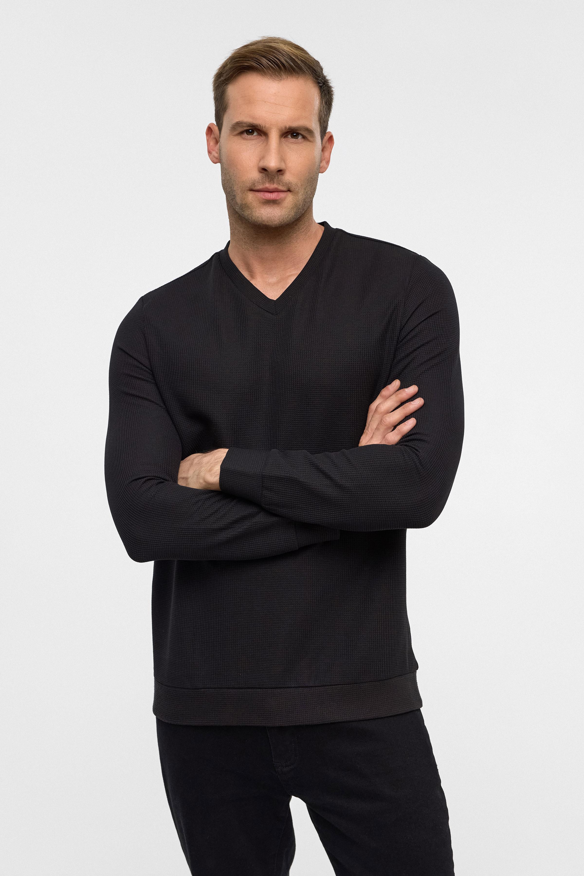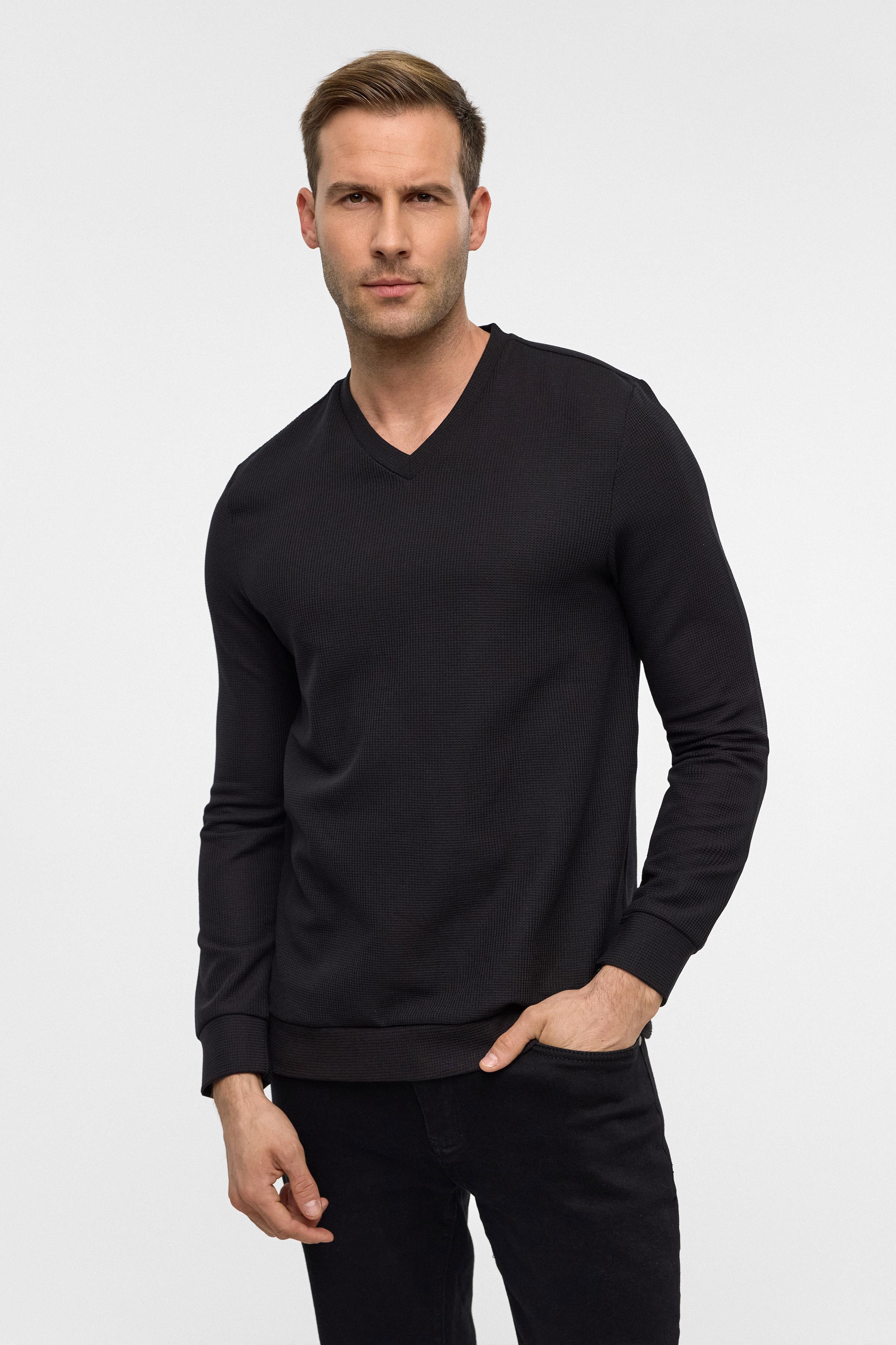 Siyah Regular Armürlü V Yaka Triko (TR2013700473-S09)