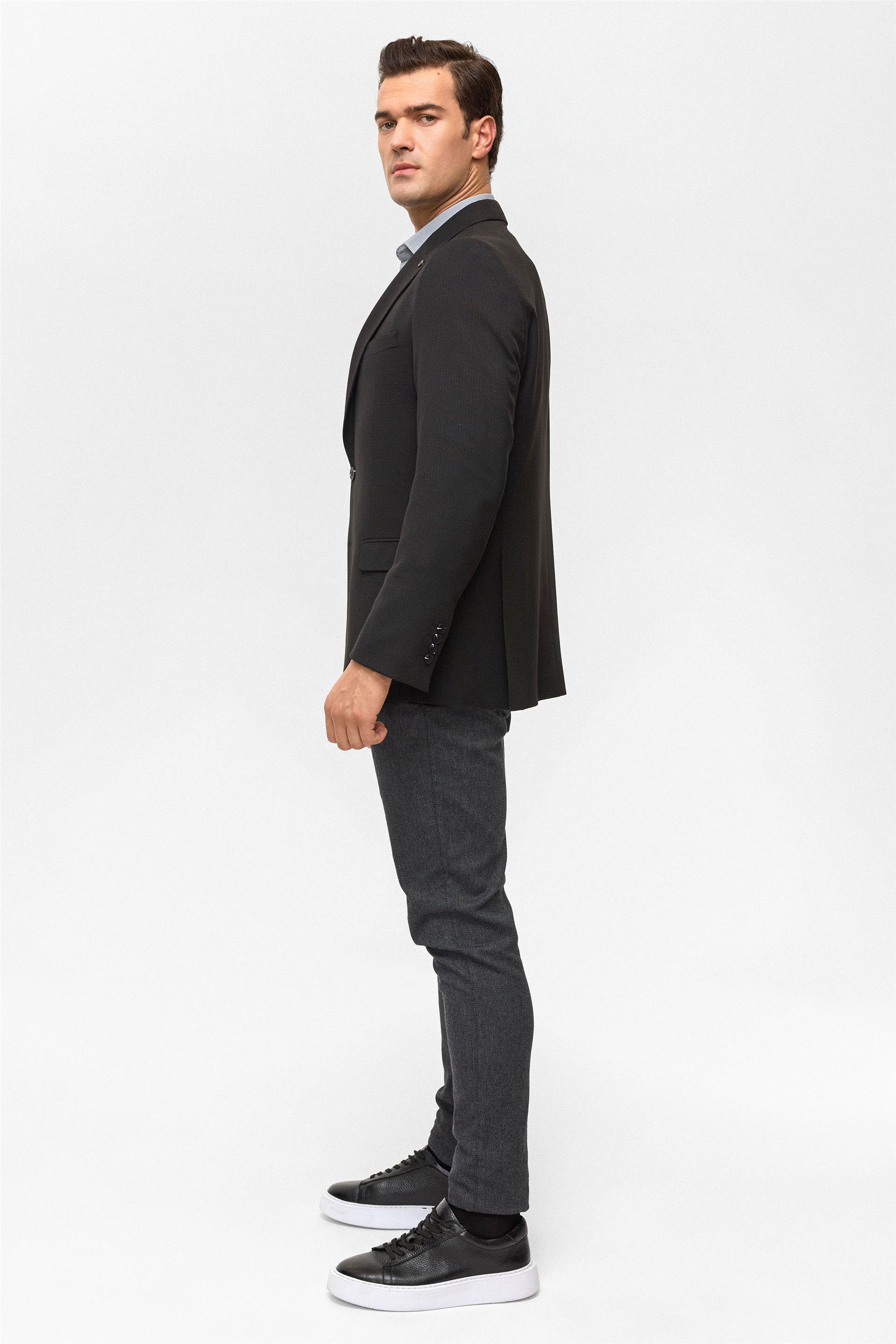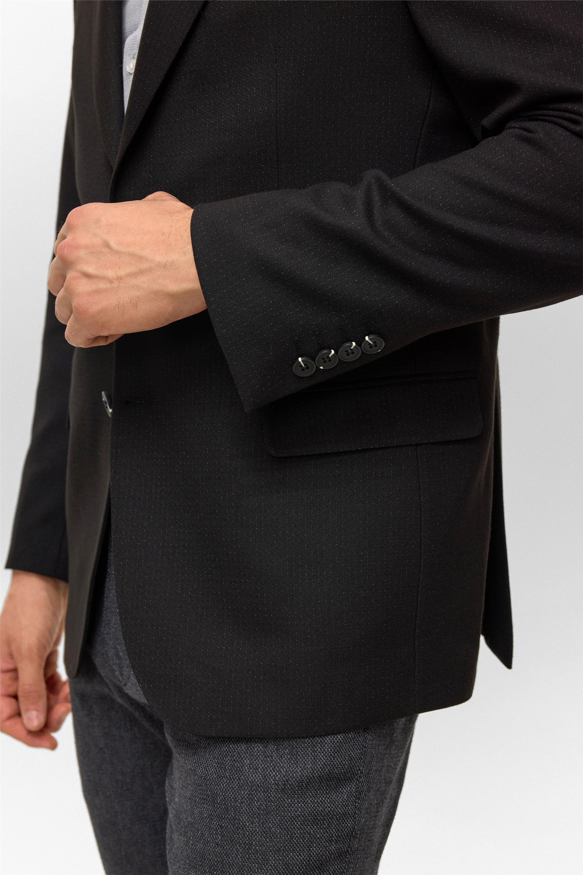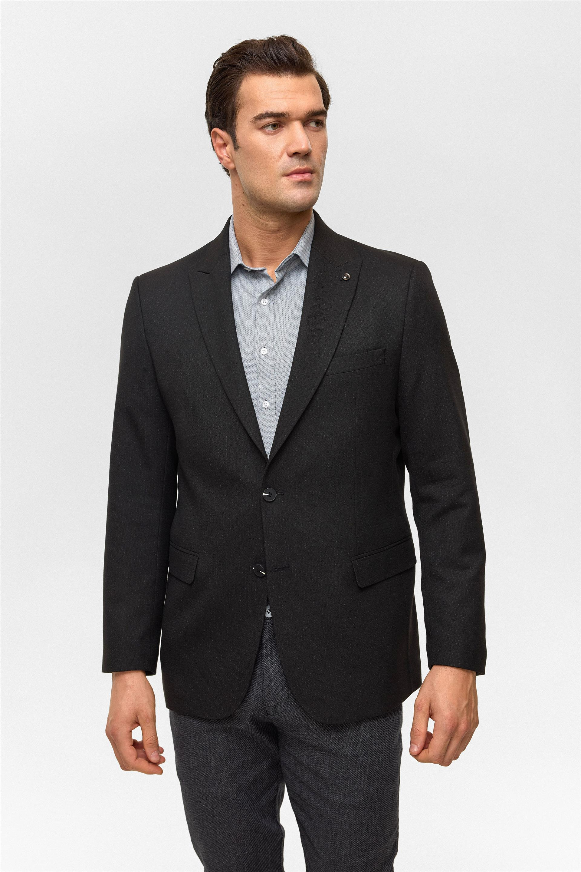 Siyah Regular Desenli Mono Yaka 6 Drop Ceket (CT2004800294-S09)