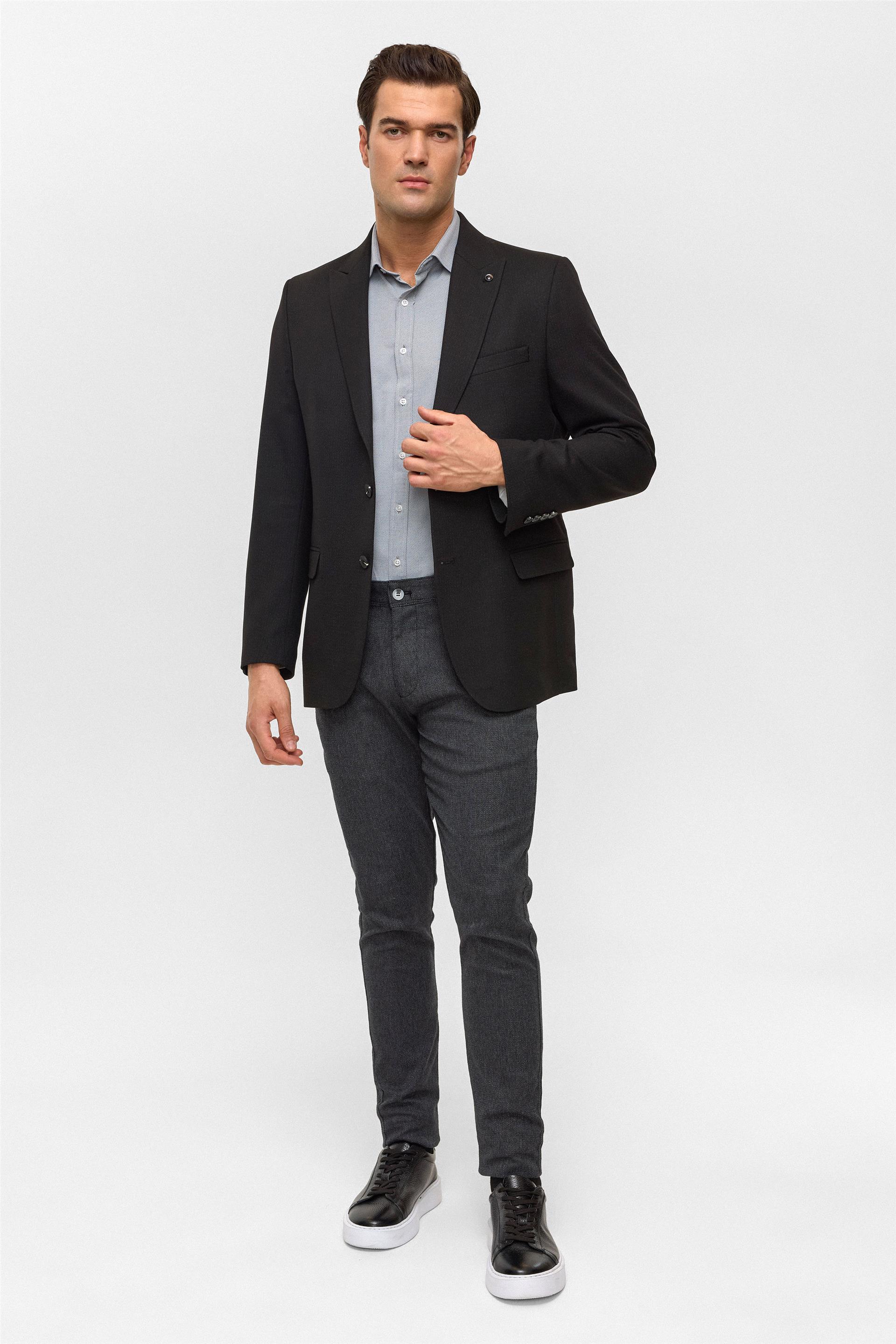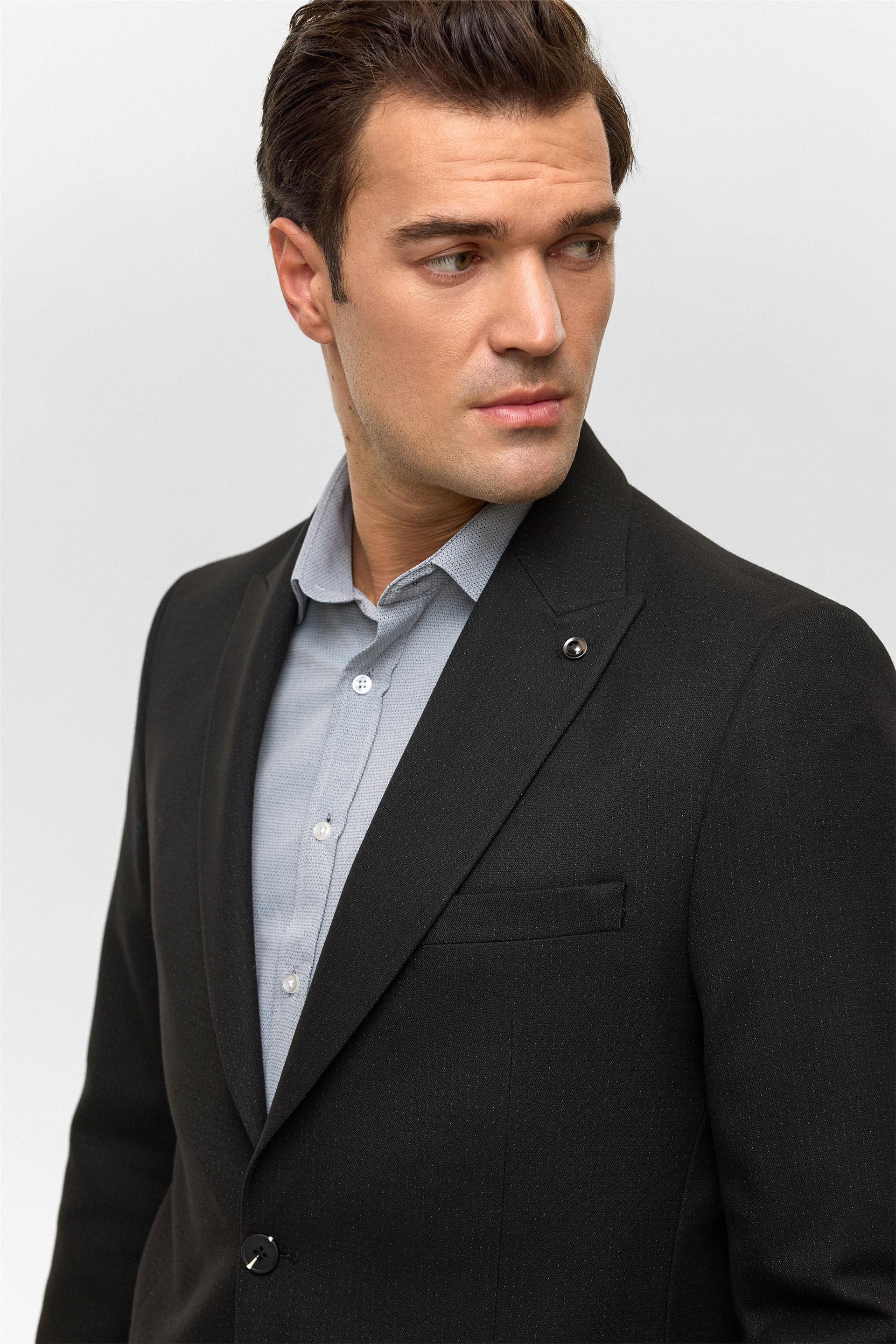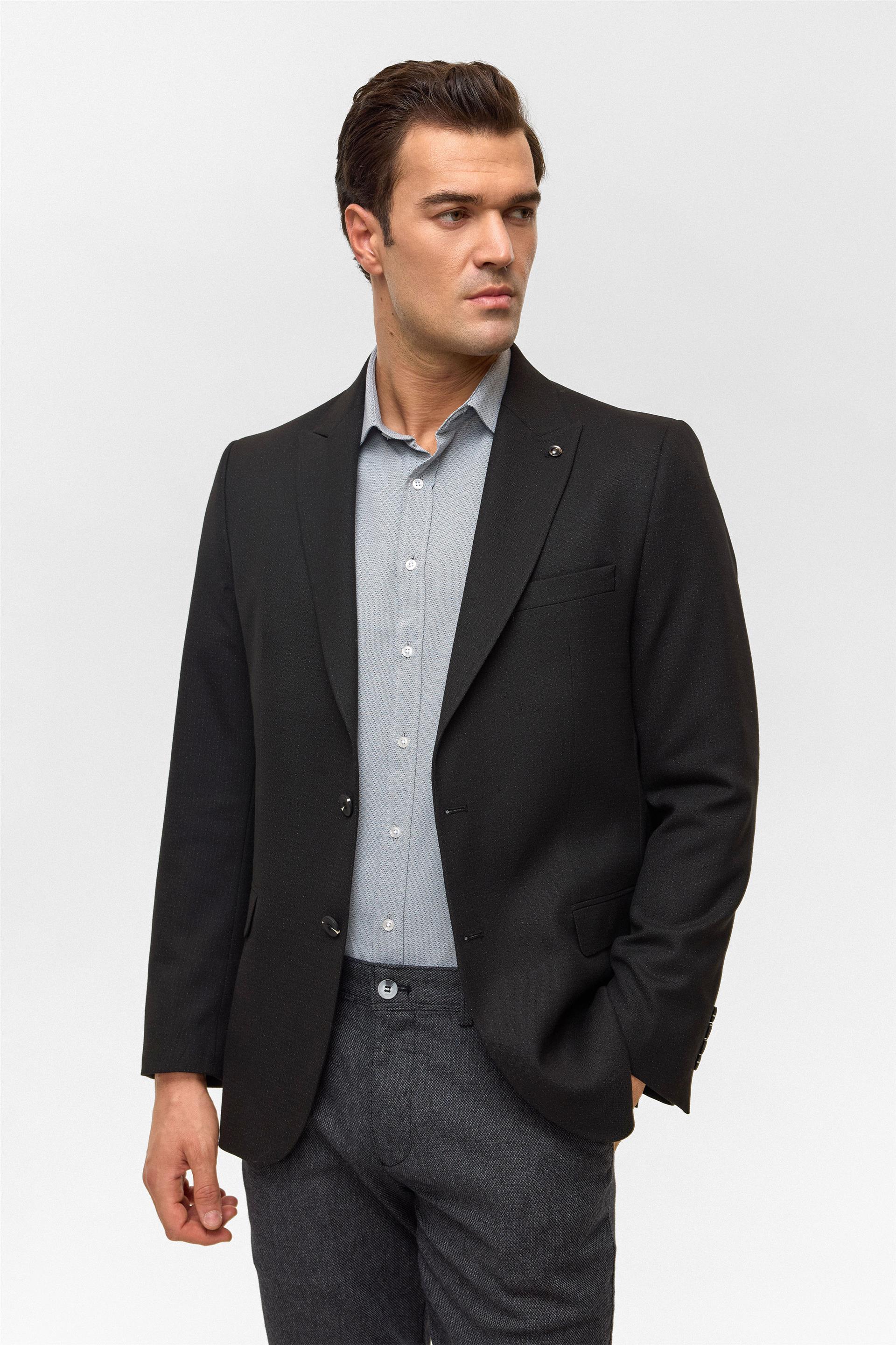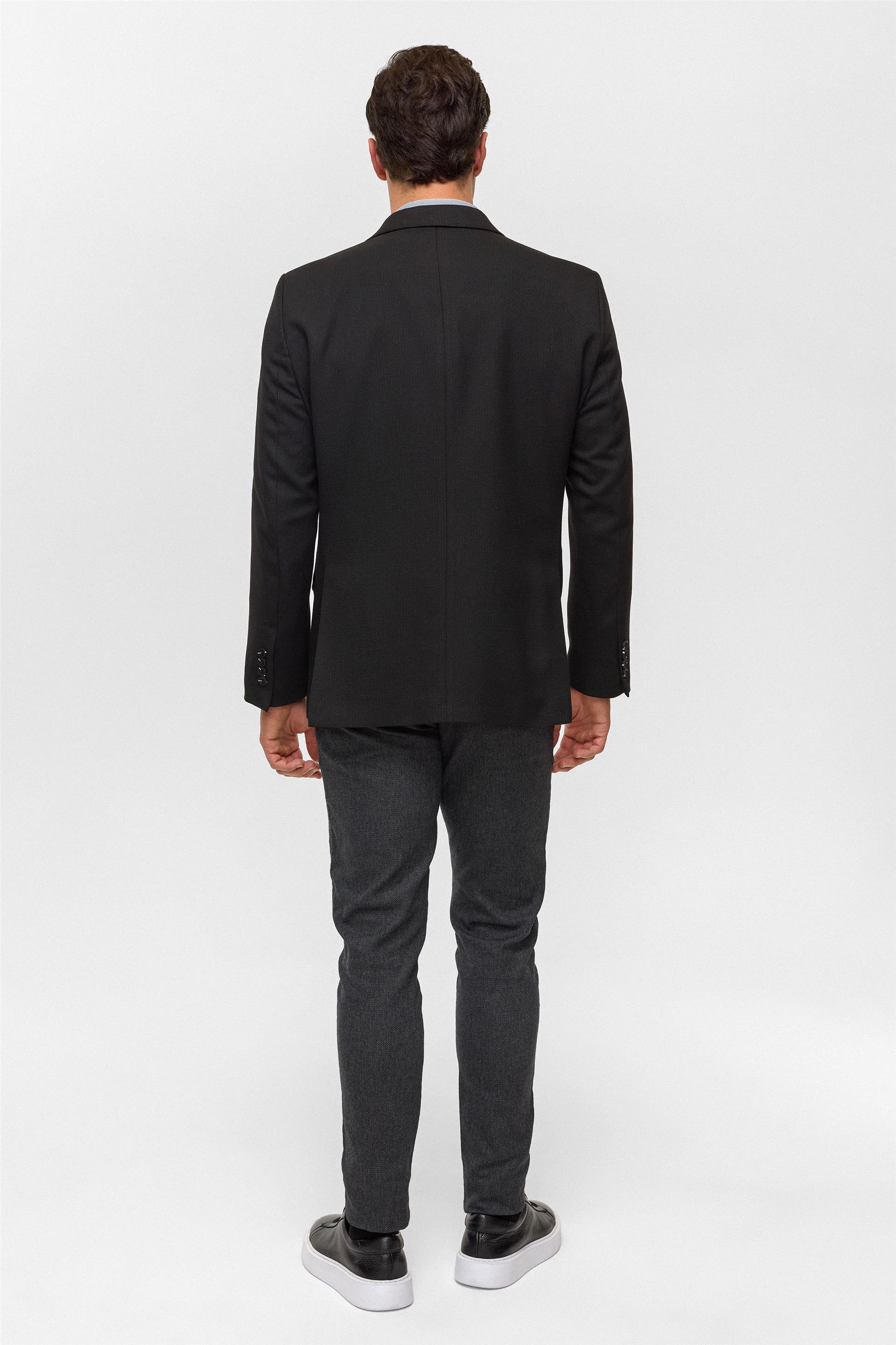 Siyah Regular Desenli Mono Yaka 6 Drop Ceket (CT2004800294-S09)