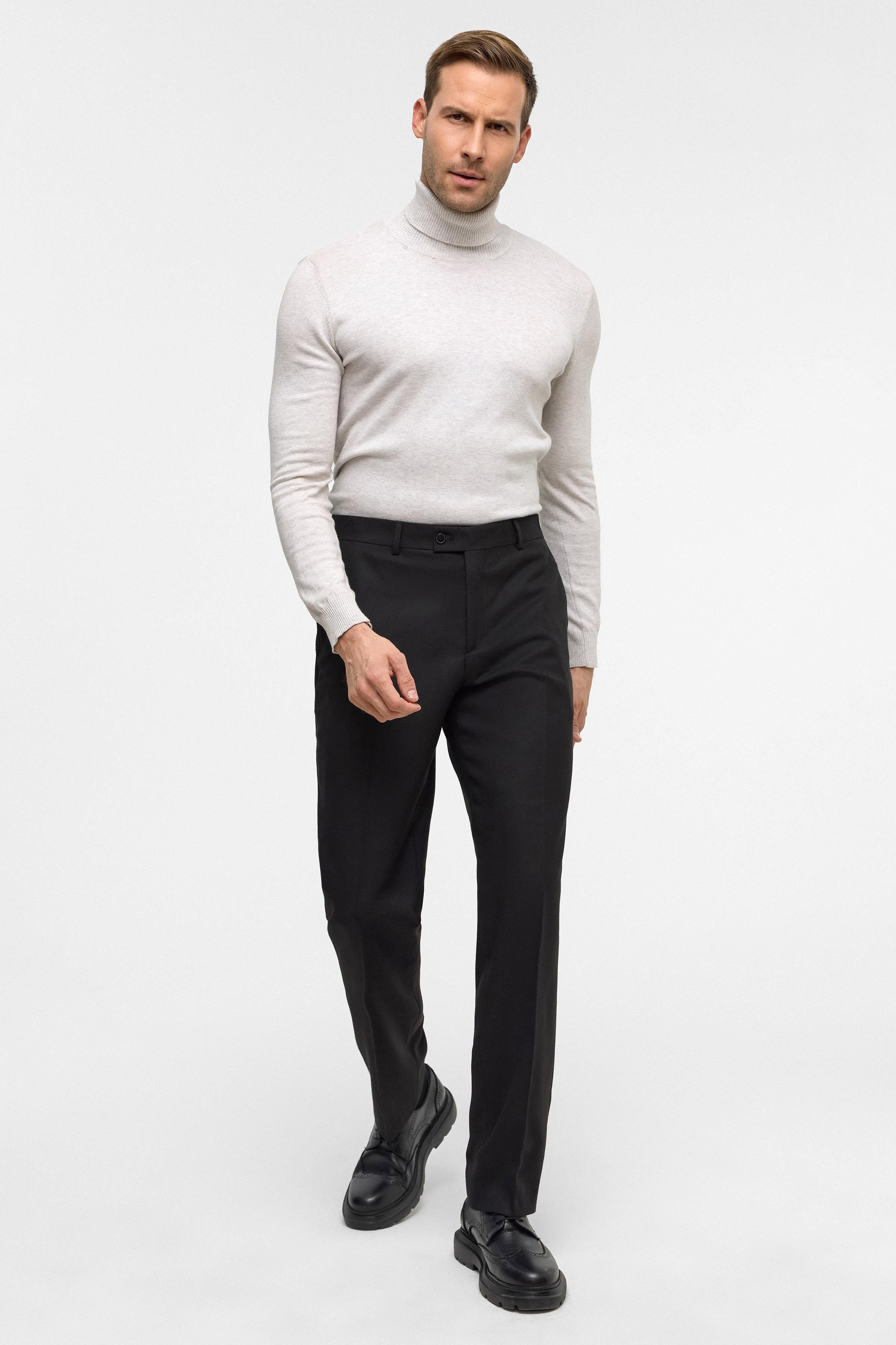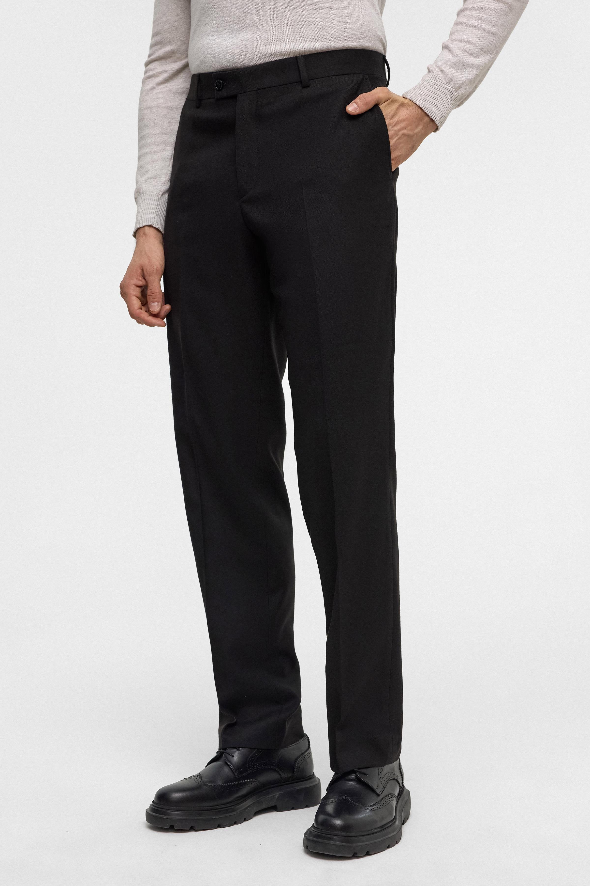 Siyah Siyah Regular Düz Pantolon