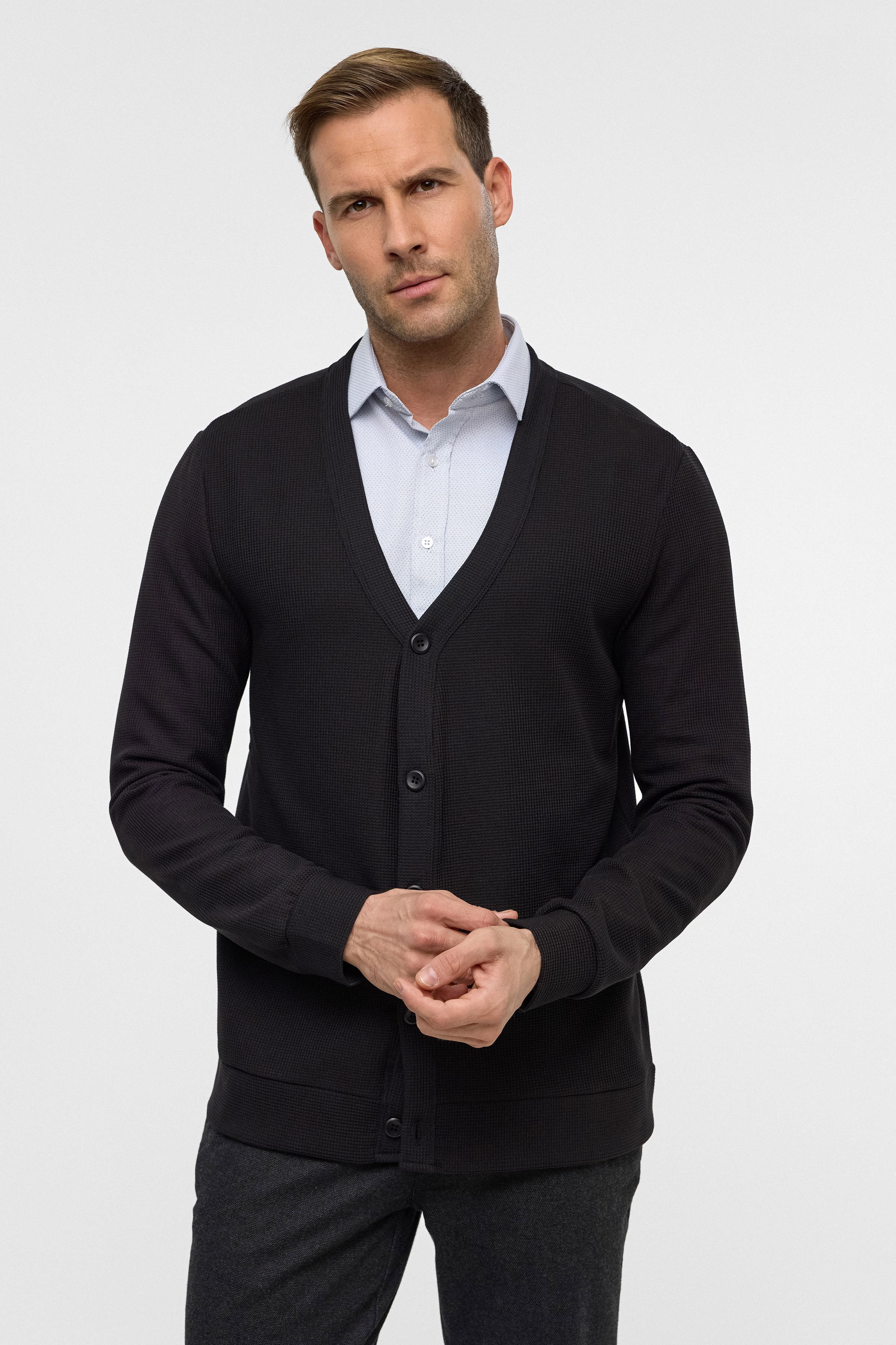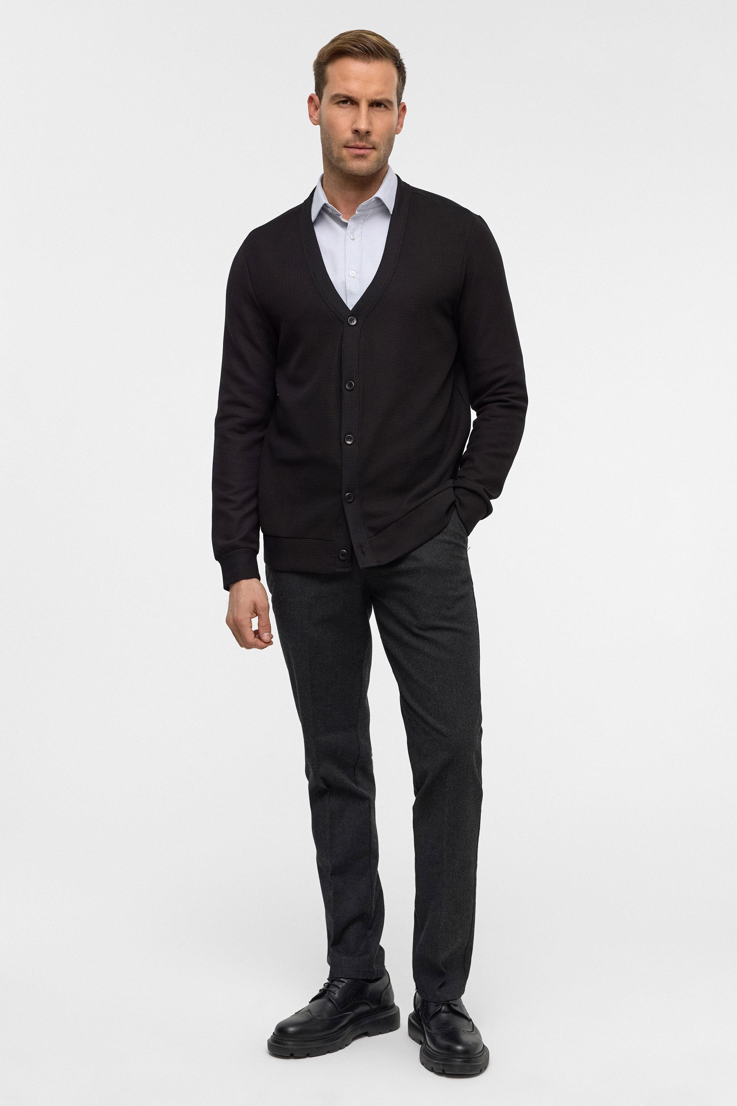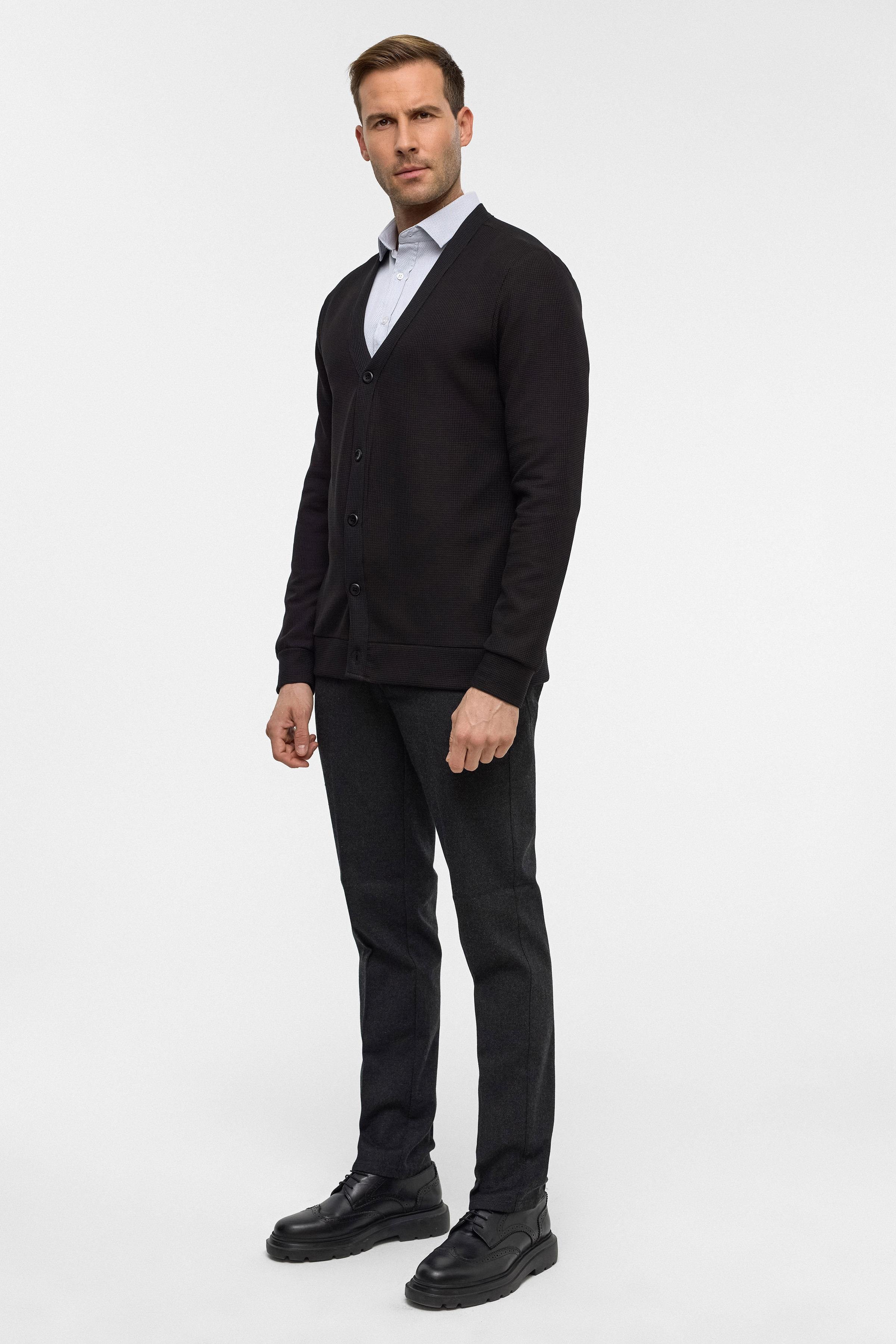 Siyah Siyah Regular Düz V Yaka Hırka