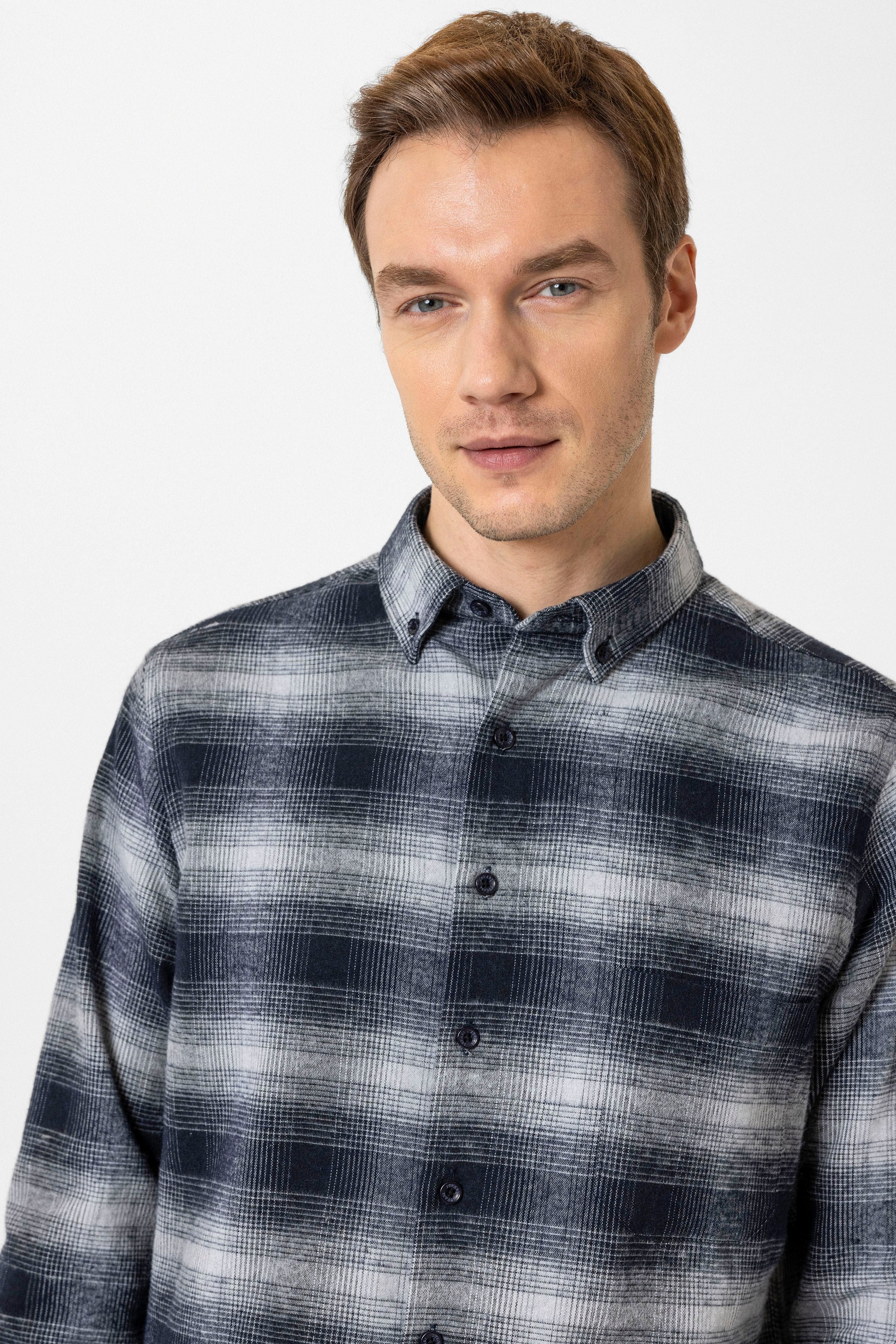 Siyah Regular Fit Kareli Düğmeli Yaka Gömlek (GM2008000229-S09)